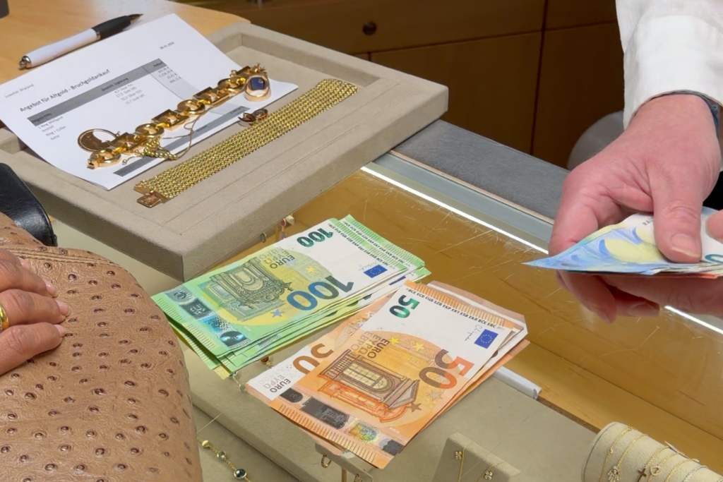 Sie erhalten ein transparentes Angebot auf Basis des aktuellen Goldkurses – Auszahlung direkt vor Ort oder per Überweisung.