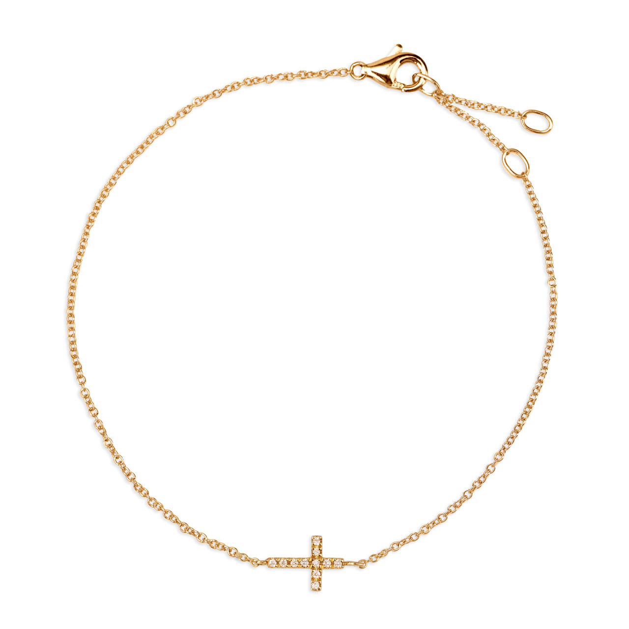 Gefertigt aus hochwertigem Gelbgold 750 besticht das Armband durch seine polierte Oberfläche und die sorgfältige Verarbeitung. Die feine Ankerkette trägt ein seitlich eingearbeitetes Kreuz, das mit 11 Brillanten (insgesamt 0,005 ct, HSI) besetzt ist und für dezenten Funkelreiz sorgt. Der stabile Karabinerverschluss gewährleistet sicheren Halt bei angenehmem Tragekomfort.