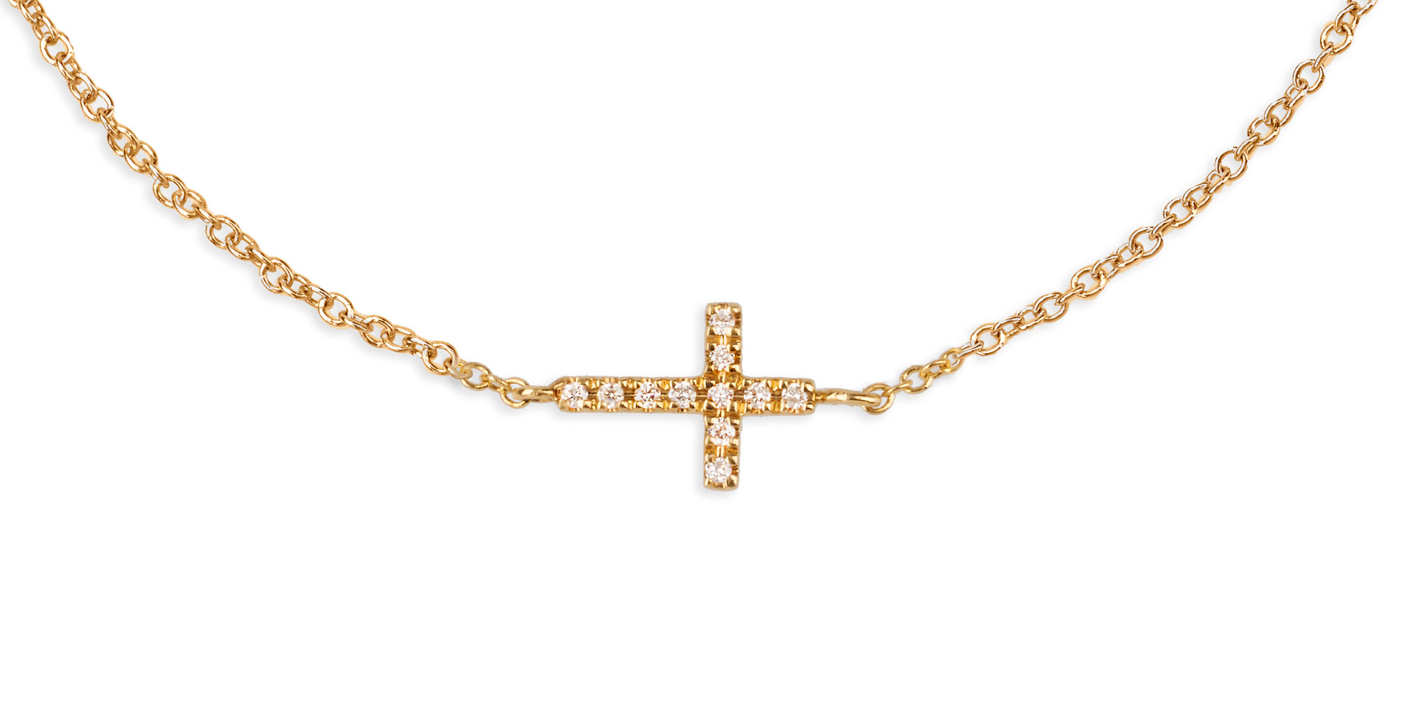 Feines Armband mit Kreuz-Motiv, das klassische Eleganz mit dezentem Diamantschimmer verbindet. Das filigrane Schmuckstück eignet sich ideal für gehobene Alltagslooks und besondere Anlässe gleichermaßen.