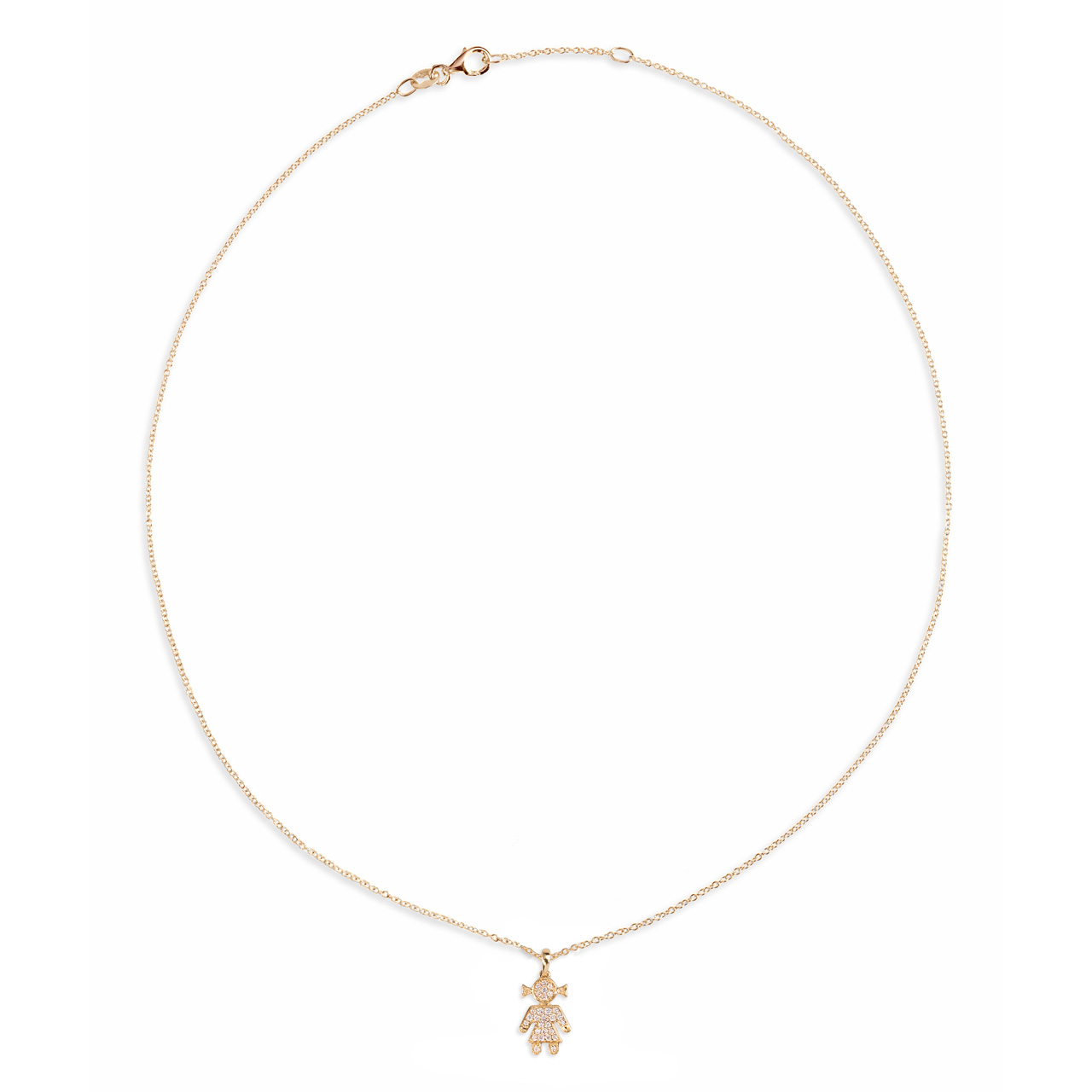 Der kindlich anmutende Girl-Motivanhänger wirkt dezent und zugleich ausdrucksstark, ideal für Damen, die feine, symbolische Schmuckstücke schätzen. Die Länge beträgt 45 cm mit einer Zwischenöse bei 42 cm, wodurch sich die Kette flexibel an verschiedene Ausschnitte anpassen lässt.