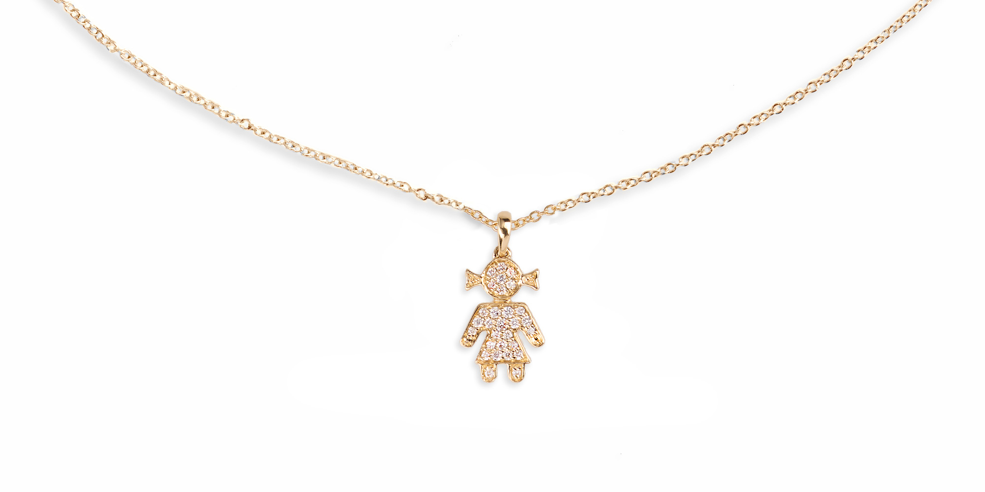 Fein gearbeitete Halskette von Atelier Wieland mit zartem Girl-Anhänger und funkelnden Brillanten – ein elegantes Accessoire, das Alltag und besondere Momente stilvoll begleitet.
