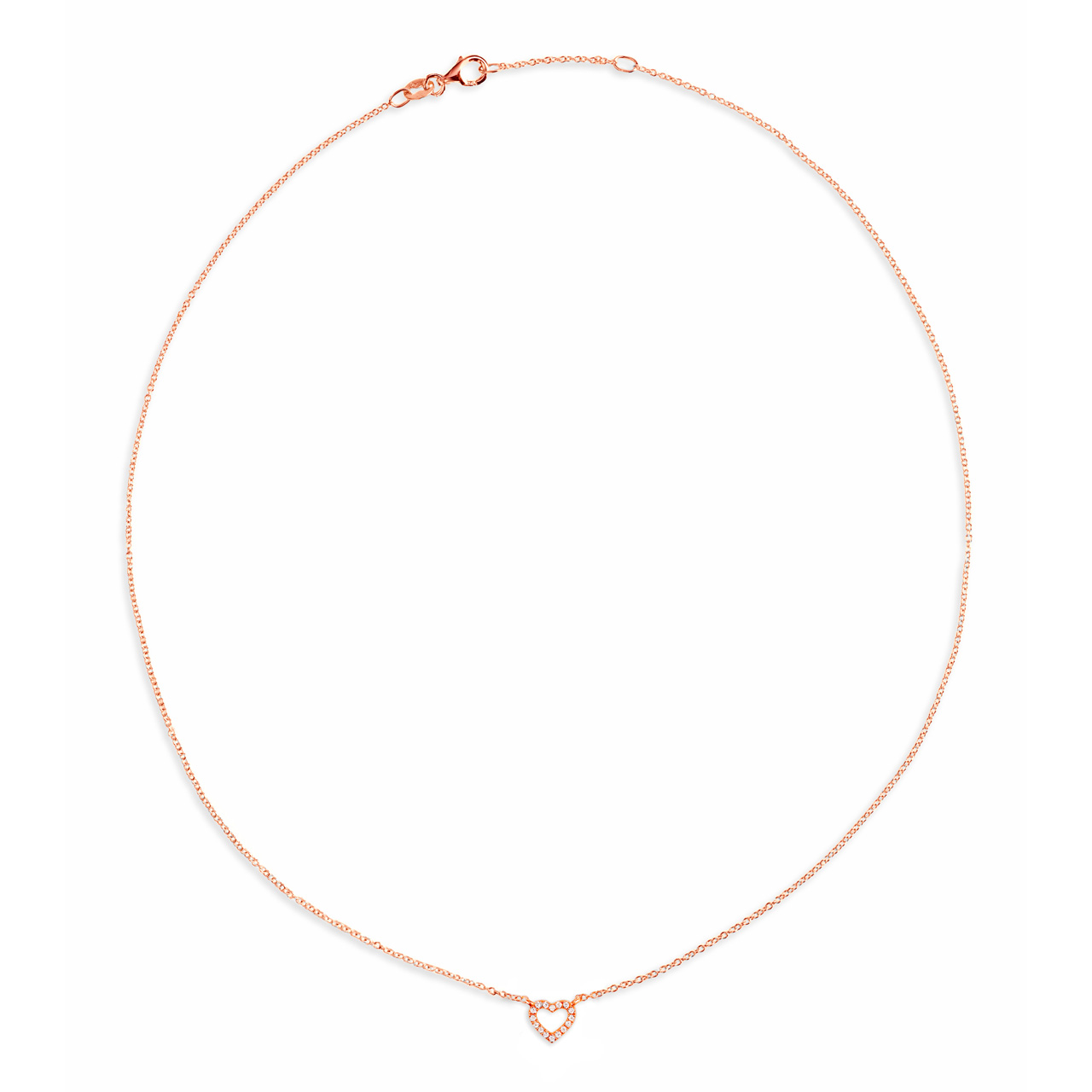 Feine Halskette von Atelier Wieland: zarte Ankerkette in Roségold 750 mit einem kleinen Herz-Anhänger, besetzt mit 16 Brillanten (gesamt 0,05 ct, Farbe H, Reinheit SI). Die schmale Kette verbindet minimalistisches Design mit hochwertiger Handwerkskunst und wirkt besonders elegant am Dekolleté.