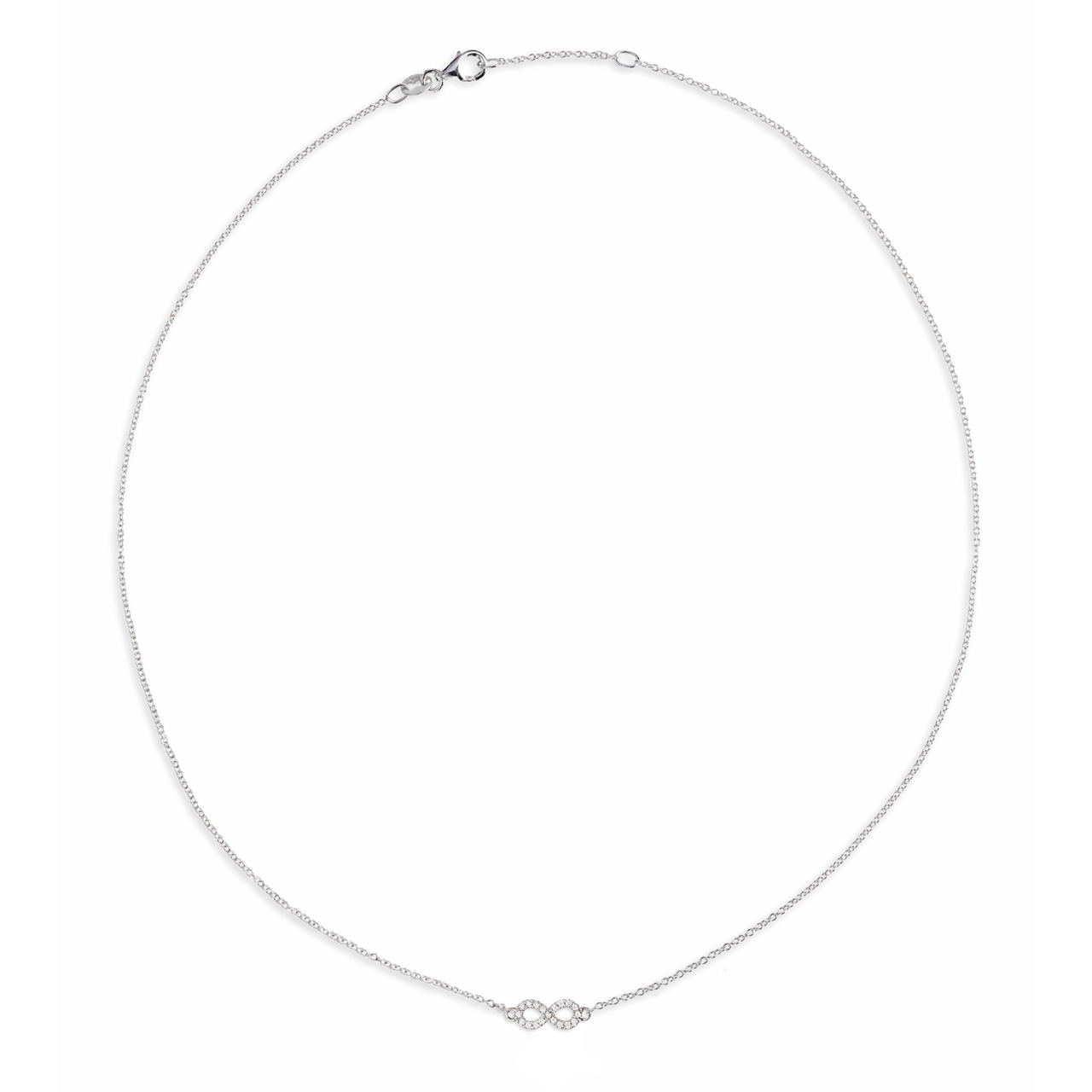 Elegante Infinity-Halskette in Weißgold 750 mit 19 Brillanten (0,06 ct). 45 cm Ankerkette, poliert. Online bestellen oder im Juwelier Wieland in Pullach erleben.