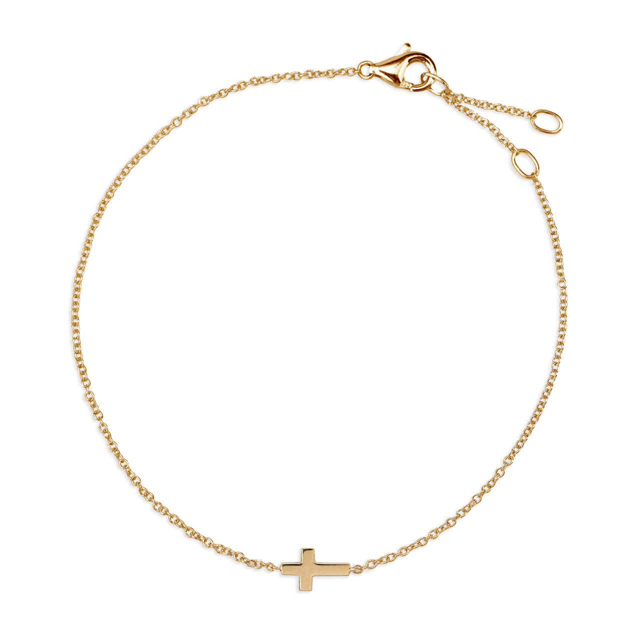 Feines Kreuzarmband aus Gelbgold 585 mit polierter Oberfläche, 18 cm Ankerkette und Karabiner. Gravurfähig mit kostenloser Gravuroption. Jetzt online oder im Laden in Pullach entdecken.